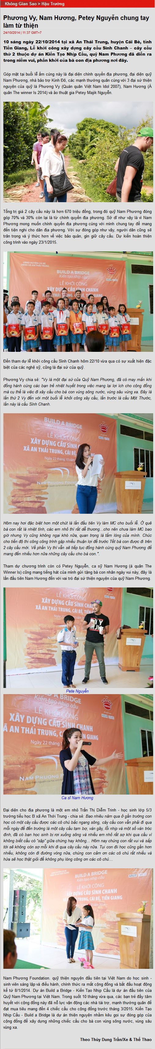 8showbiz.com 24/10/2014: Phương Vy, Nam Hương, Petey Nguyễn chung tay làm từ thiện