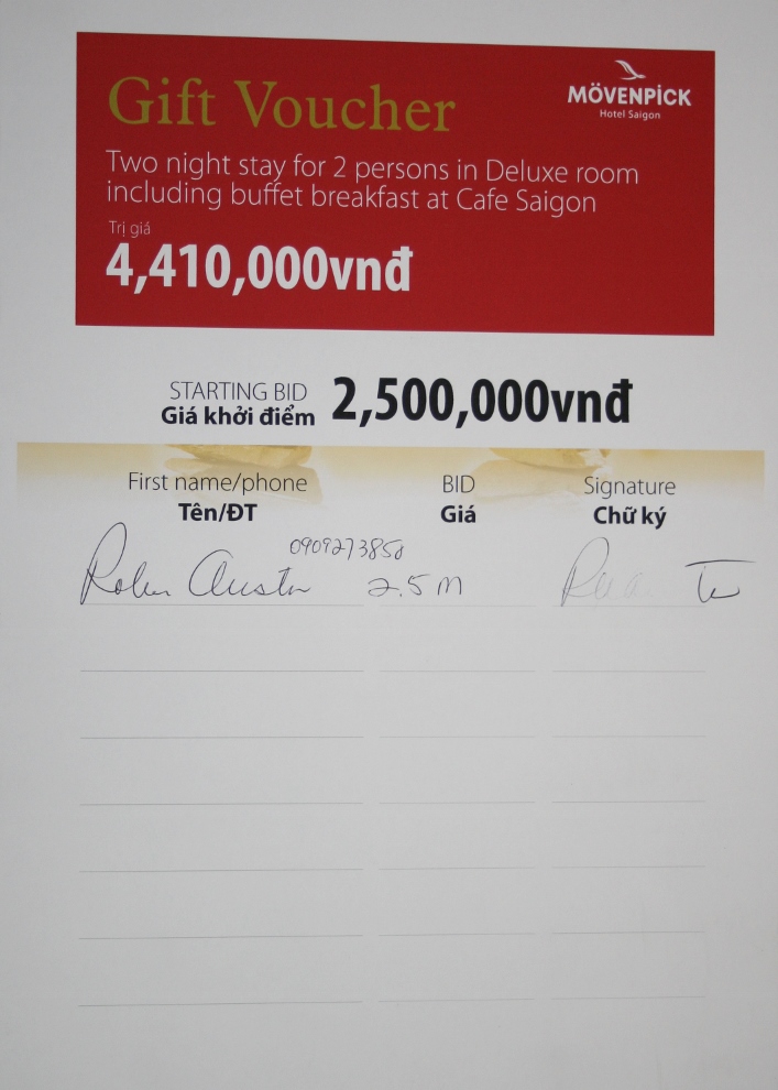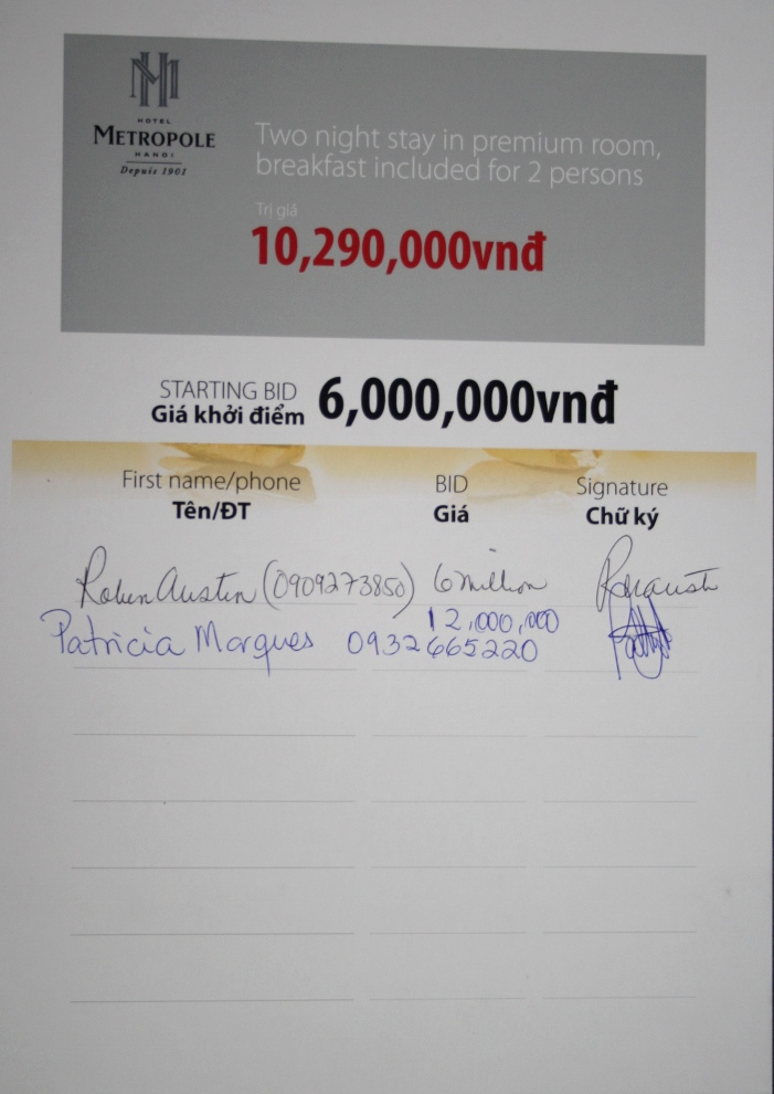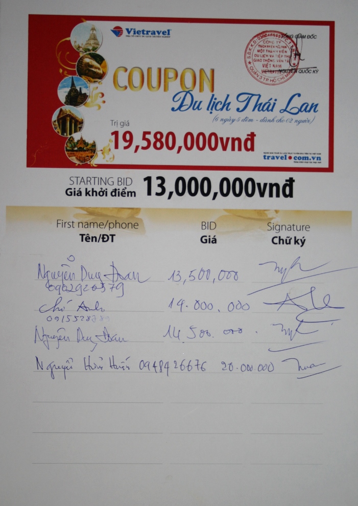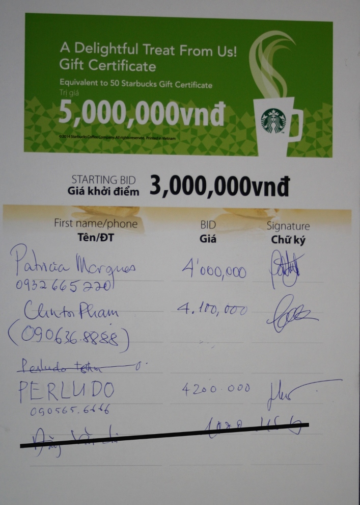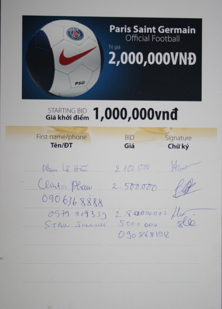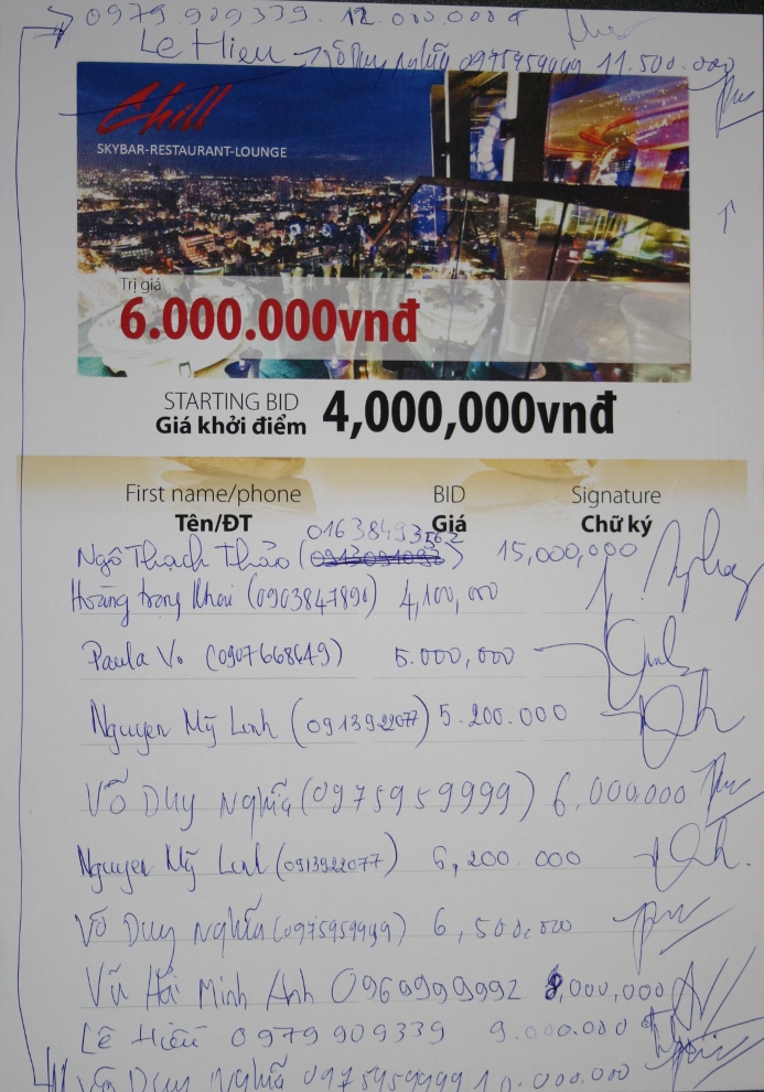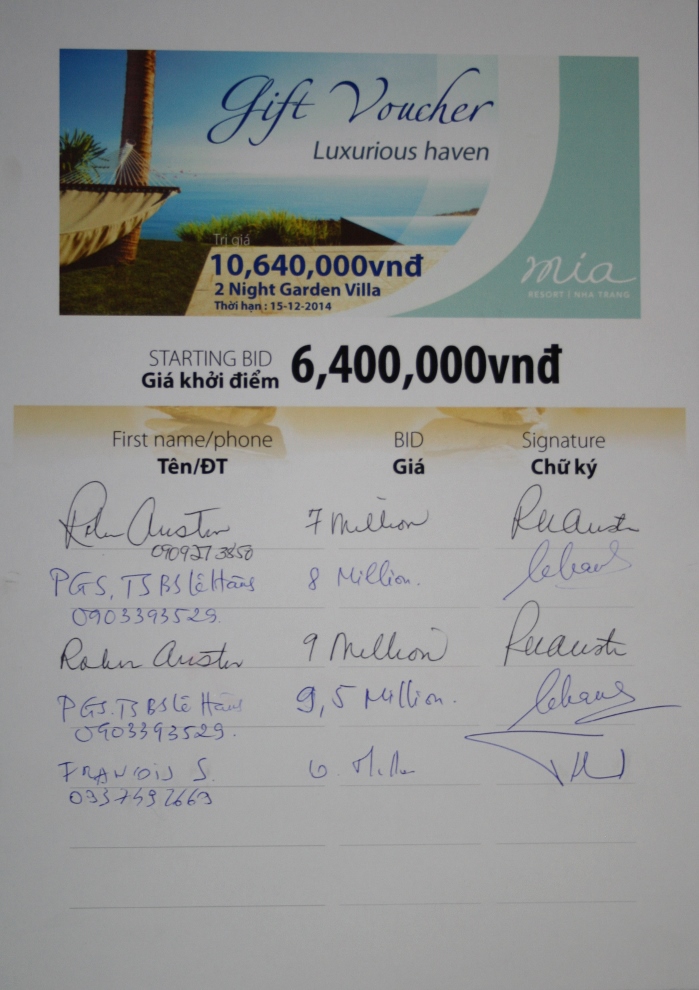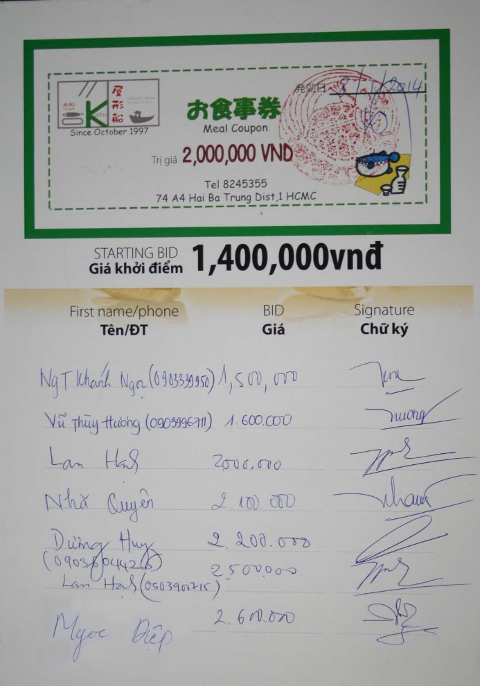 Danh sách các cá nhân tập thể ủng hộ thông qua hoạt động Silent Auction tại lễ ra mắt NPF 8/1/2014