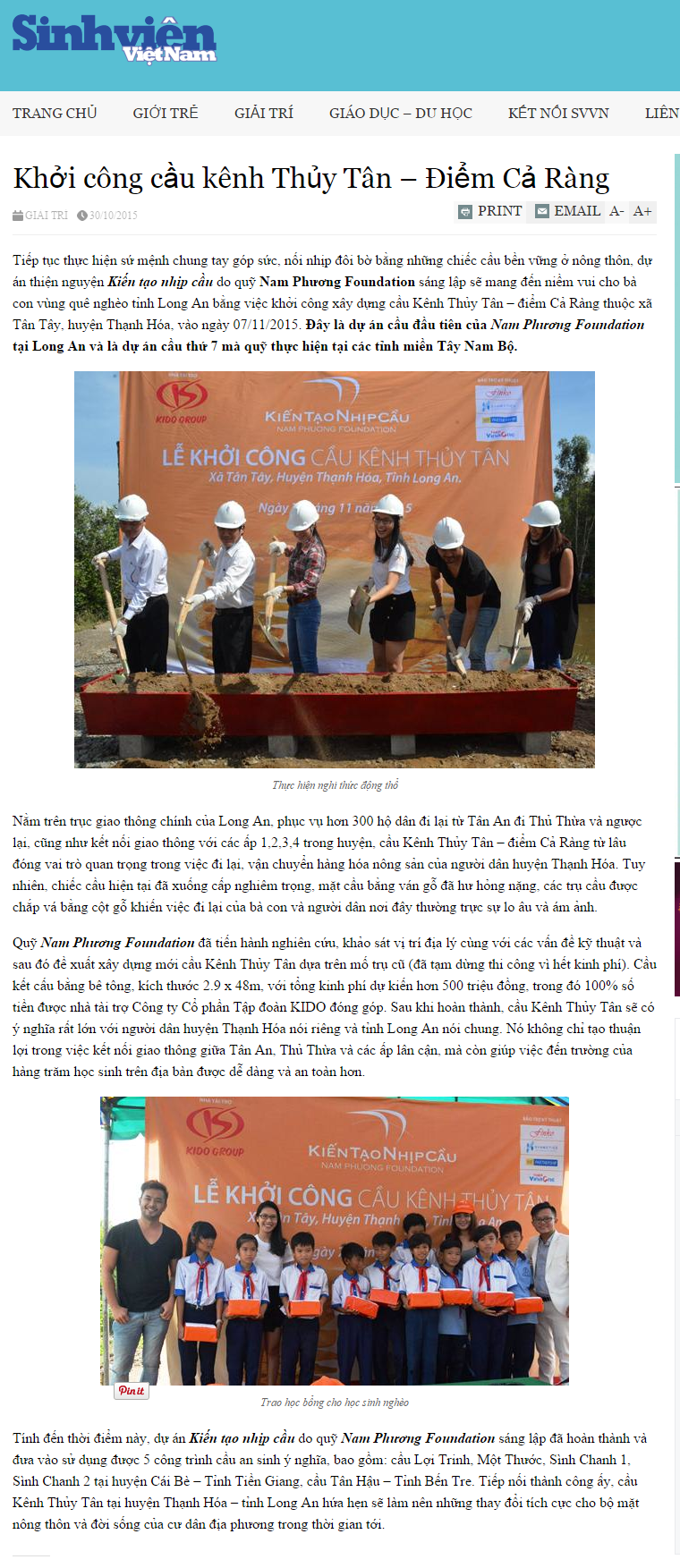 Viết về chúng tôi [SVVN] Khởi công cầu Kênh Thủy Tân – điểm Cả Ràng Posted on 20/11/2015 by admin Bài viết liên quan HẬU GIANG, BẠC LIÊU RỘN RÀNG NGÀY QUỸ NAM PHƯƠNG KHÁNH THÀNH 2 CÂY CẦU MỚI QUỸ NAM PHƯƠNG: KIẾN TẠO NHỊP CẦU MÙA 10 CÙNG HẬU GIANG VÀ BẠC LIÊU Quỹ Nam Phương khởi công cầu Khang Ninh tại An Giang Báo Zing – Quỹ Nam Phương phối hợp Công ty Tôn Đông Á xây cầu Khang Mỹ [Kiến Tạo Nhịp Cầu – Mùa 7] Tập 1