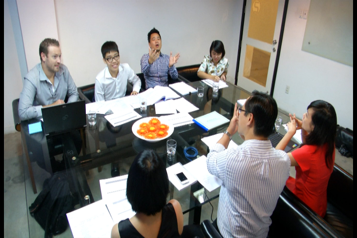 Bá Khang (áo trắng) họp với đơn vị tư vấn thiết kế và xây dựng quốc tế, Arup và Finko